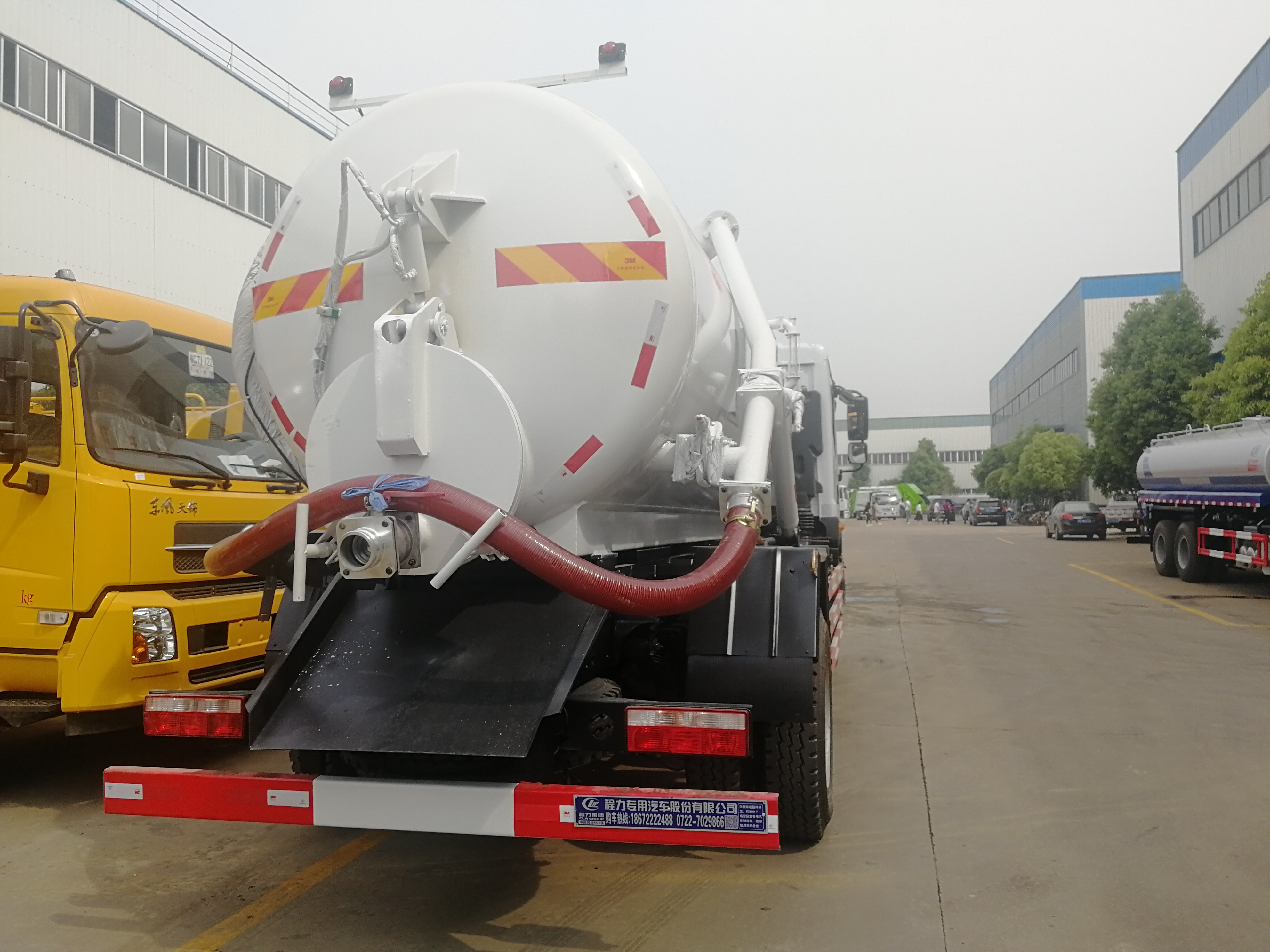 湖北程力吸污車工作原理 吸污車專用部分由取力器、傳動(dòng)軸、真空吸污泵、壓力罐體、液壓部分,管網(wǎng)系統(tǒng)、真空壓力表、視糞窗、洗手裝置等組成,隨車配置大功率真空吸污泵和優(yōu)質(zhì)液壓系統(tǒng),罐體封頭一次壓鑄成型、罐體可后開、雙頂自卸。罐內(nèi)污物可通過后蓋直接傾倒,具有真空度高(比吸糞車的吸力更大)、噸位大、效率高、用途更廣泛的特點(diǎn)。 油水分離器,水氣分離器,液壓自卸裝置,專用真空吸污泵,容積壓力表,吸物導(dǎo)管,自流閥,真空罐體,連通器(視糞窗),全自動(dòng)防溢閥,液壓套件。 吸污車主要用于清洗城市下水道,管道的沉積物,死角泥溝的疏通,也可用于清洗工業(yè)排液管道,壁面等,并可兼作灑水,運(yùn)水和沖公路用,緊急時(shí)可用于救火。 湖北程力東風(fēng)D9吸污車底盤配置: 采用東風(fēng)D9底盤,白色排半可前翻駕駛室,康明斯180馬力國五發(fā)動(dòng)機(jī),8檔變速箱,軸距45000mm,10噸后橋,10.00R20原廠鋼絲胎,原廠abs,電動(dòng)玻璃,原廠空調(diào),帶方向助力,離合助力器,氣剎制動(dòng)。 湖北程力東風(fēng)D9吸污車上裝配置: 東風(fēng)D9吸污車罐體形狀為圓柱形,采用武鋼6mm厚優(yōu)質(zhì)碳鋼鋼板,罐體前部帶吸污窗,洗手裝置,舉升裝置,吸污管8米一根,罐體多種顏色選擇,其余按廠內(nèi)標(biāo)準(zhǔn)配置制作。隨車配置大功率真空吸污泵和優(yōu)質(zhì)液壓系統(tǒng),罐體封頭一次壓鑄成型、罐體可后開、雙頂自卸。罐內(nèi)污物可通過后蓋直接傾倒,具有真空度高(比吸糞車的吸力更大)、噸位大、效率高、用途更廣泛的特點(diǎn)。(垂直吸程:≥8 m,工作壓力:8500Pa,理論抽速:120L/S,軸功功率:≤13kw,進(jìn)排氣口徑:50mm,抽滿罐時(shí)間:<5 min,排滿罐時(shí)間:<4min。吸污車采用大功率真空泵,一次壓鑄成型的封頭-,加厚的抗壓罐體,雙頂液壓系統(tǒng),是比吸糞車功能更強(qiáng)大的車型。下面是山東濰坊用戶再次到湖北程力訂購12方吸污車發(fā)車圖片: |
