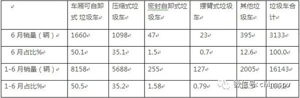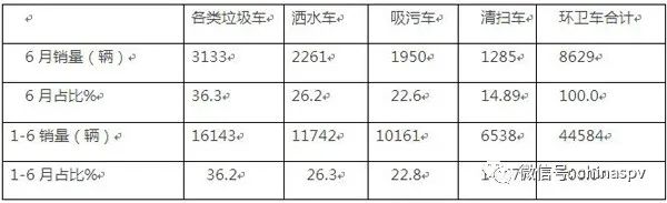 上表顯示,今年6月及1-6月各類環衛車銷量及占比呈現以下特點: