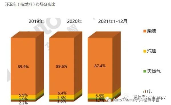 ---汽油動力環衛車占比7%,居第二,且與近年比有微弱增長的跡象;
