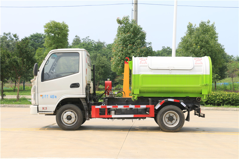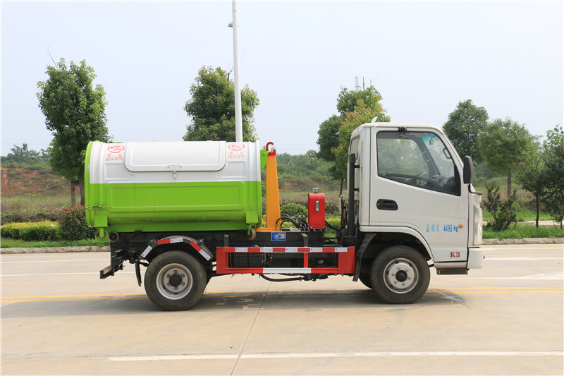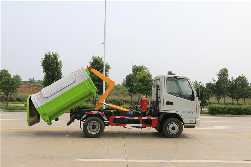 凱馬3方勾臂垃圾車上裝配置:強度合金鋼一體式主勾臂,加強型副梁,鑄鋼尾托輪,手電一體液壓操控裝置,上裝提升能力2500KG,液壓完成上箱+下箱+鎖緊+自卸等作業,實現一車配多箱的循環轉運。