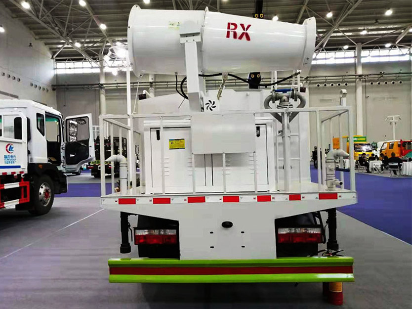 底盤電池提供動力,永磁同步電機驅動,可根據需要實時調速,取力操作與底盤行駛系統無任何關聯,用車體驗感極佳。東風純電動新能源5方多功能抑塵車改裝配置:碳鋼箱體帶防腐防銹、低水位報警系統。倒車及高炮狀態室內監控系統,40/50(10方以上60/90或50/110)威龍離心式低壓水泵,前沖、后灑、不銹鋼電子高炮均為自動控制。鋁合金后平臺、側防護。后平臺30--60米(10方以上80-100米)霧炮機組,機組電機為永磁同步電機。
