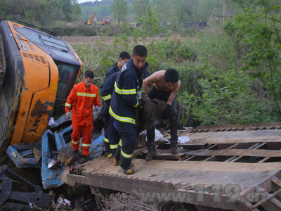 消防官兵到達(dá)現(xiàn)場(chǎng)后,發(fā)現(xiàn)一輛貨車(chē)車(chē)頭直接扎入溝中,在貨車(chē)上的挖掘機(jī)側(cè)翻在一旁,當(dāng)?shù)嘏沙鏊?20急救人員已經(jīng)趕到了現(xiàn)場(chǎng)。見(jiàn)此情形,消防官兵迅速展開(kāi)營(yíng)救,但由于貨車(chē)狠狠的撞在田埂上,駕駛室已經(jīng)嚴(yán)重變形,消防官兵利用液壓剪擴(kuò)鉗、液壓撐頂器等破拆工具均未能使駕駛室有效擴(kuò)張,而且挖掘機(jī)隨時(shí)有壓下來(lái)的危險(xiǎn)。于是,中隊(duì)指揮員立即協(xié)調(diào)公安部門(mén),將附近的一輛挖掘機(jī)借調(diào)過(guò)來(lái),配合消防官兵實(shí)施營(yíng)救。 挖掘機(jī)到位后,指揮員立即下令挖掘機(jī)將貨車(chē)車(chē)身往后牽引,使車(chē)頭留有救援空間供消防官兵救援。命令下達(dá)后,救援人員各司其職,迅速的投入到戰(zhàn)斗中去。 19時(shí)05分,通過(guò)消防官兵1個(gè)多小時(shí)的緊張救援,貨車(chē)司機(jī)被成功救出,但由于撞擊嚴(yán)重,被困時(shí)間過(guò)長(zhǎng),醫(yī) |
