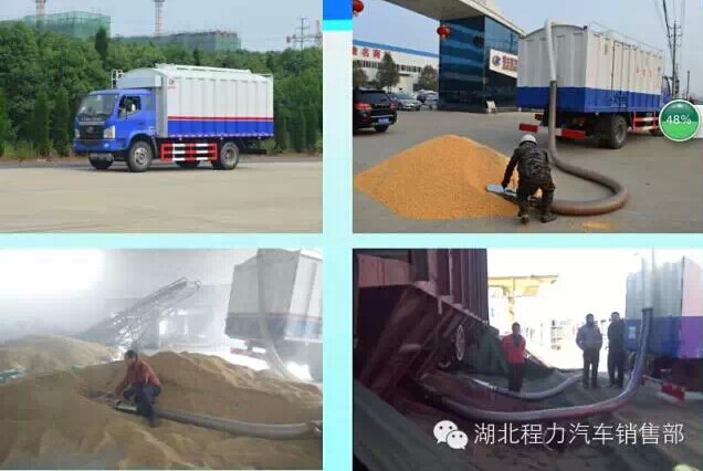 湖北程力散裝糧食車(chē)配置優(yōu)勢(shì)和工作原理廠家價(jià)格圖片,參數(shù) 散裝糧食運(yùn)輸車(chē)主要由:密封式糧箱、夾心取力器、高壓風(fēng)機(jī)、除塵器、集塵箱、齒輪泵、多路閥、油缸等組合而成。 散裝糧食運(yùn)輸車(chē)配置: 糧箱尺寸:4900×2250×1800(mm),實(shí)際容積20m³,有效容積18m³。糧箱材質(zhì):邊三底四。右側(cè)開(kāi)一側(cè)門(mén),尾部有大小兩個(gè)自卸口。