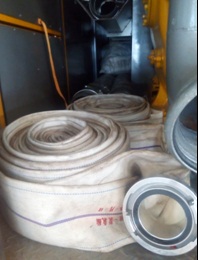 水泵出水口一分四個5寸,每個出水口66米出水軟管(33m/卷,),軟管為快速接頭連接,操作方便,并在接頭處有防松保險裝置,安全可靠。水管直徑125CM水管材質為雙面PVC,耐磨,耐壓10kg,快速接頭為凸輪接頭。