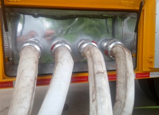 水泵進水口為一分兩個八寸,抽水管采用八寸美國進口透明水管,質量輕,拿取方便,配3.5米長水管4根。接頭采用東方式快速接頭,使用方便,密封效果好;每個進水口配置鴨嘴式接頭,實現低水位抽吸作業。各進水口配90°彎頭。