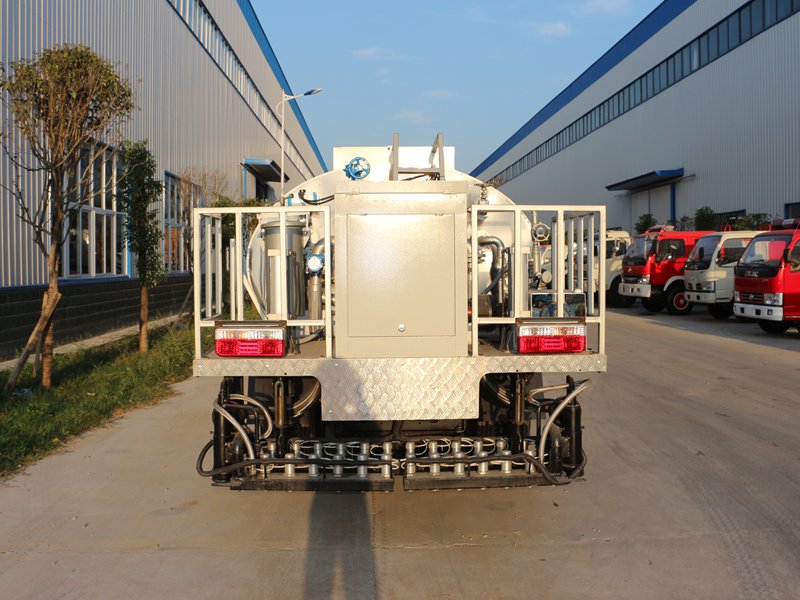 東風多利卡4立方瀝青灑布車采用東風多利卡底盤,朝柴115馬力,汽剎,5檔變速箱,2噸前橋,3.5噸后橋,軸距3300mm,7.00-16尼龍胎,單排前翻駕駛室。(此車為新款車型)