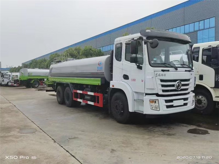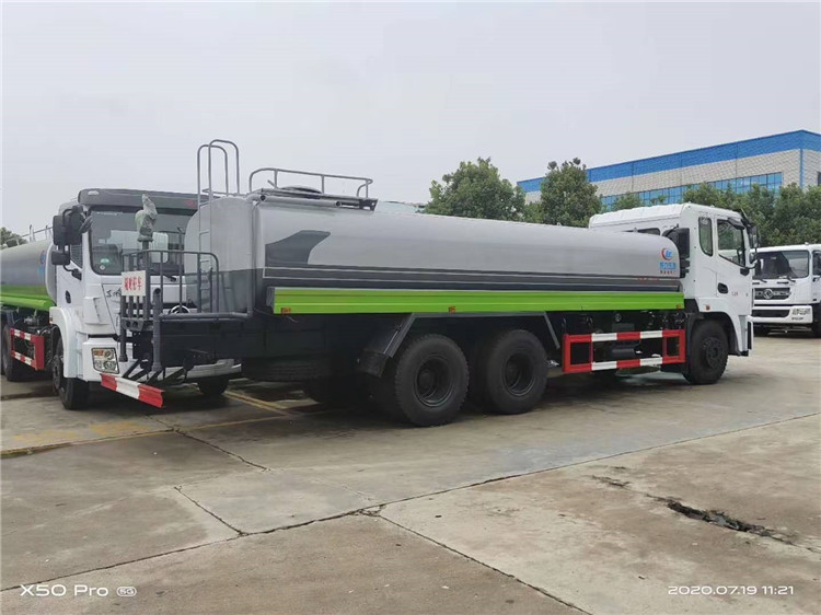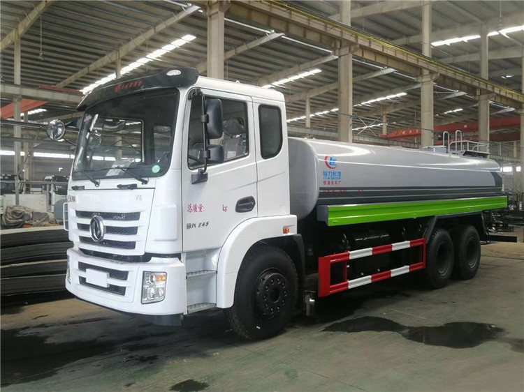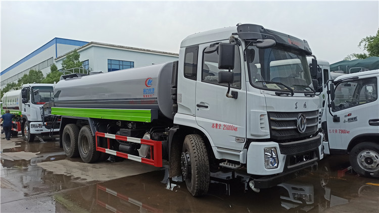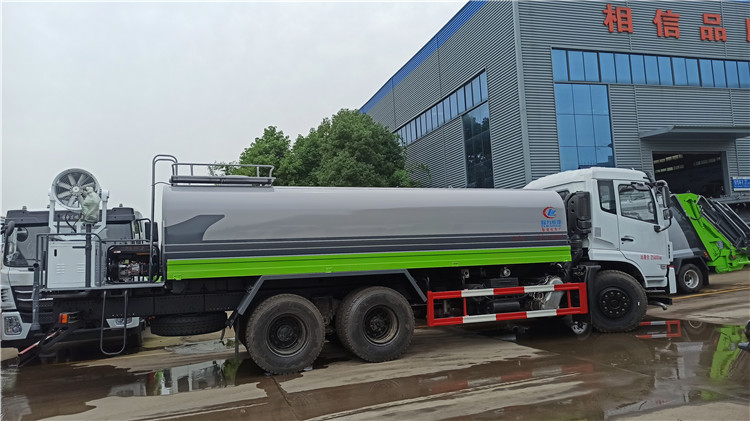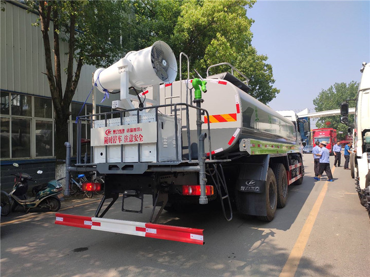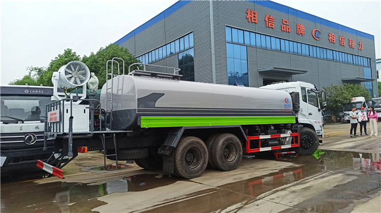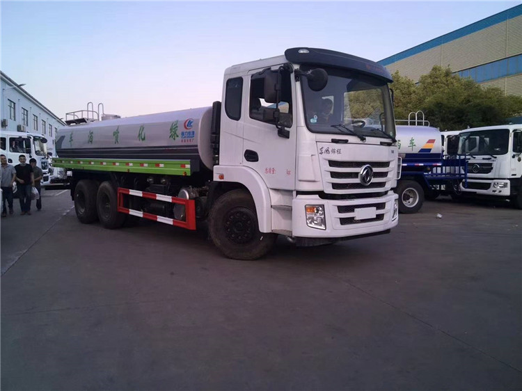 湖北程力國六東風(fēng)錦程V6后雙橋18噸灑水車程力威牌CLW5253GPSD6型綠化噴灑車廠家配置: | 湖北程力國六東風(fēng)錦程V6后雙橋18噸灑水車底盤配置:采用東風(fēng)后雙橋原裝底盤,東風(fēng)錦程齊星軍工V6四點懸浮駕駛室,4350+1350mm軸距,搭載國六(國Ⅵ)東風(fēng)康明斯230/260馬力柴油發(fā)動機,功率169/191kw,國六排放,陜齒法士特八檔變速箱,11.00R20鋼絲胎,前橋5T,后橋雙10T,方向助力,斷氣剎,排氣制動,原裝空調(diào),行駛記錄儀,多媒體顯示屏,電動門窗,中控鎖,氣囊座椅,ABS。湖北程力國六東風(fēng)錦程V6后雙橋18噸灑水車專用配置:罐體容積:19立方米,罐體鋼板為4mm碳鋼Q235材質(zhì)專用容積板一次成型,罐內(nèi)隔板具有防波作用,以減輕汽車行駛時罐體液體沖擊;配大功率專用灑水泵,泵可自吸自排;整車前沖、后灑、側(cè)噴、后平臺帶綠化灑水炮,灑水炮可全方位旋轉(zhuǎn),可連續(xù)調(diào)成直沖狀、大雨、小雨、毛毛雨;前封頭帶水位計,后平臺主管路帶1寸澆花接口,后爬梯,帶1個消防接頭,帶1個自流閥,1個過濾裝置。湖北程力國六東風(fēng)錦程V6后雙橋18噸灑水車選裝配置:1、可選裝氣動球閥開關(guān)駕駛室內(nèi)控制; 2、可選裝后平臺帶CLW-30、40型霧炮機組