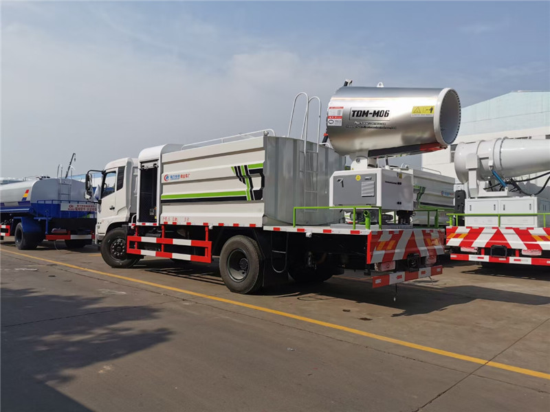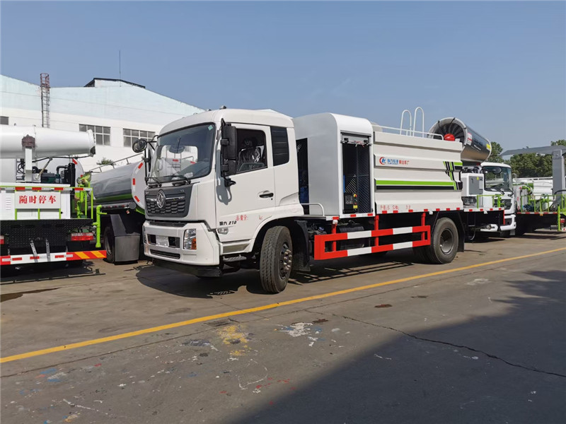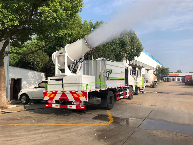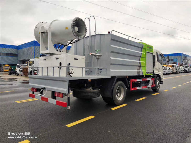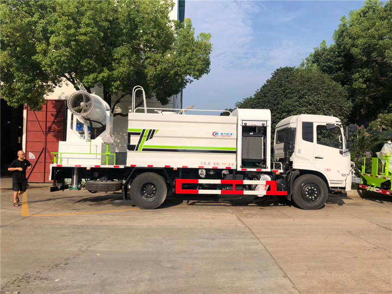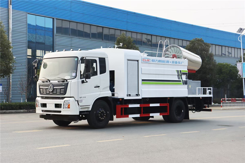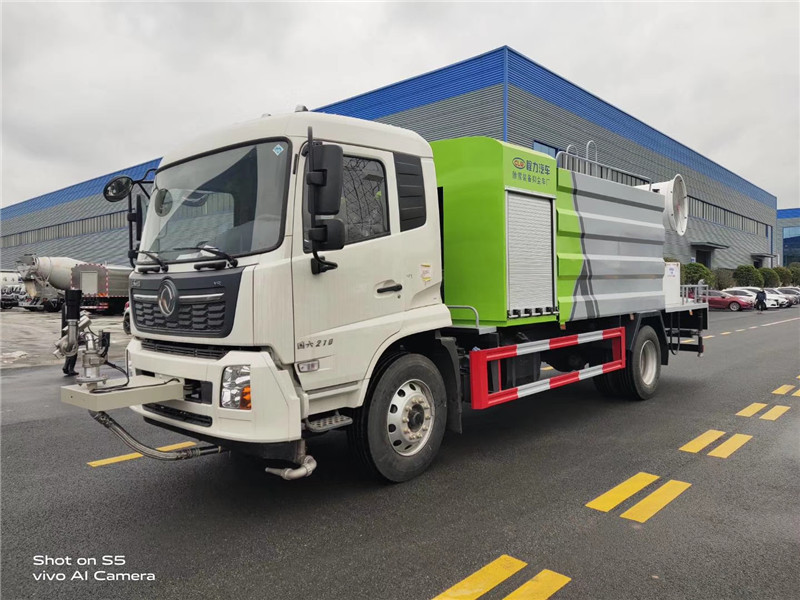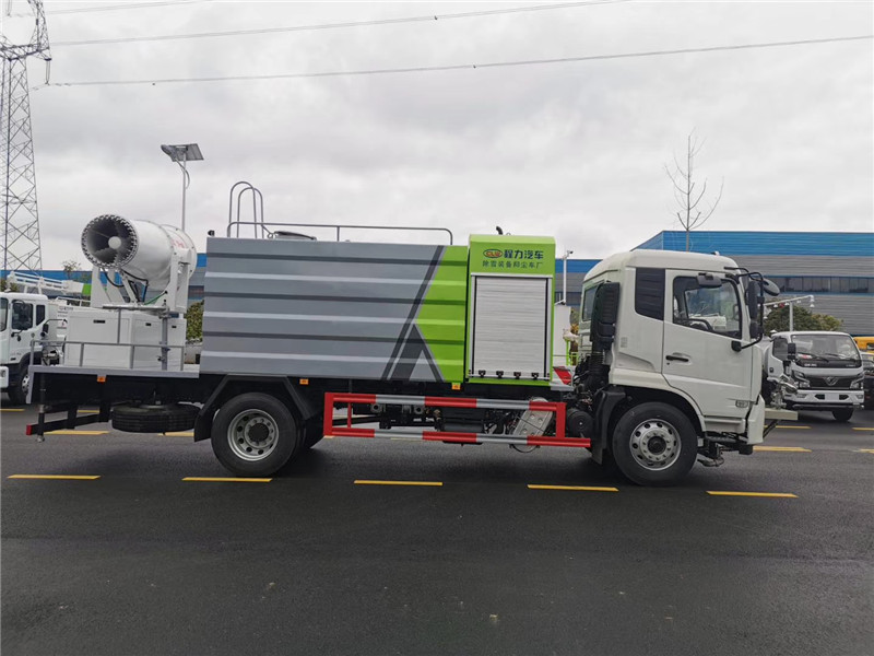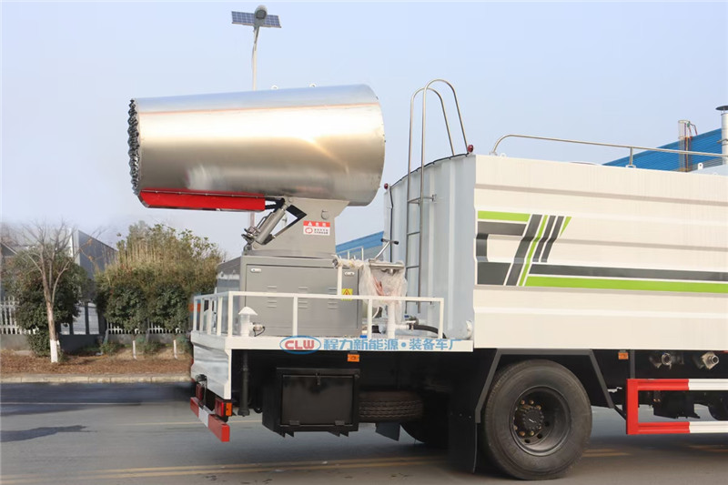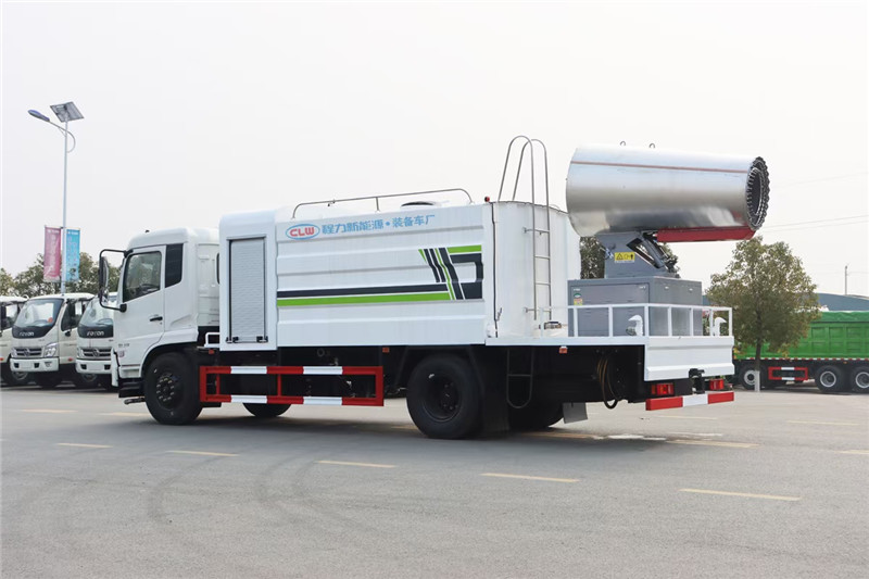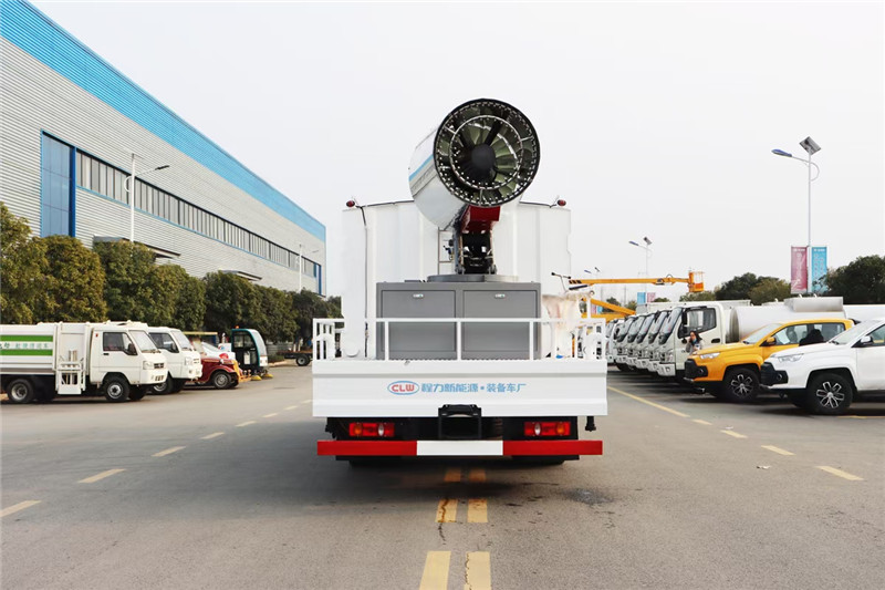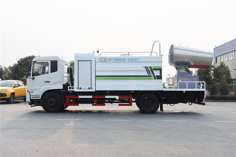 湖北程力國六東風天錦60-100米抑塵車(方罐)程力威牌CLW5181TDYD6型多功能抑塵車廠家配置: 湖北程力國六東風天錦抑塵車底盤配置:底盤采用東風天錦國六底盤,公告型號:CLW5181TDYD6,康明斯6缸ISB210馬力發動機,4700軸距,275真空胎,6檔變速箱,原裝空調,ABS。 湖北程力國六東風天錦抑塵車上裝配置:罐體容積11.3立方,罐體為方形罐,罐體內部做防腐,罐體鋼板采用Q235碳鋼鋼材,整車具備灑水車的一切功能(前沖、后灑、側噴、平臺高炮),氣動球閥控制灑水功能,水位報警器,標配億豐60/90水泵,自流閥及消防接頭各1個、水管2根。后平臺安裝一臺60米霧炮。 湖北程力國六東風天錦抑塵車霧炮參數:CLW-100型60米,副發電機組功率50(Kw),風機功率15(Kw),不銹鋼多級離心泵功率5.5(Kw)。100米無線遙控操作,霧化距離60米(靜風室內距離)實際射程:(霧化射程會受濕度、溫度、風速等各方面天氣因素的影響,另外天氣干燥地區一部分在空中被蒸發掉)。 | 湖北程力國六東風天錦60-100米抑塵車(方罐)程力威牌CLW5181TDYD6型多功能抑塵車圖片價格: